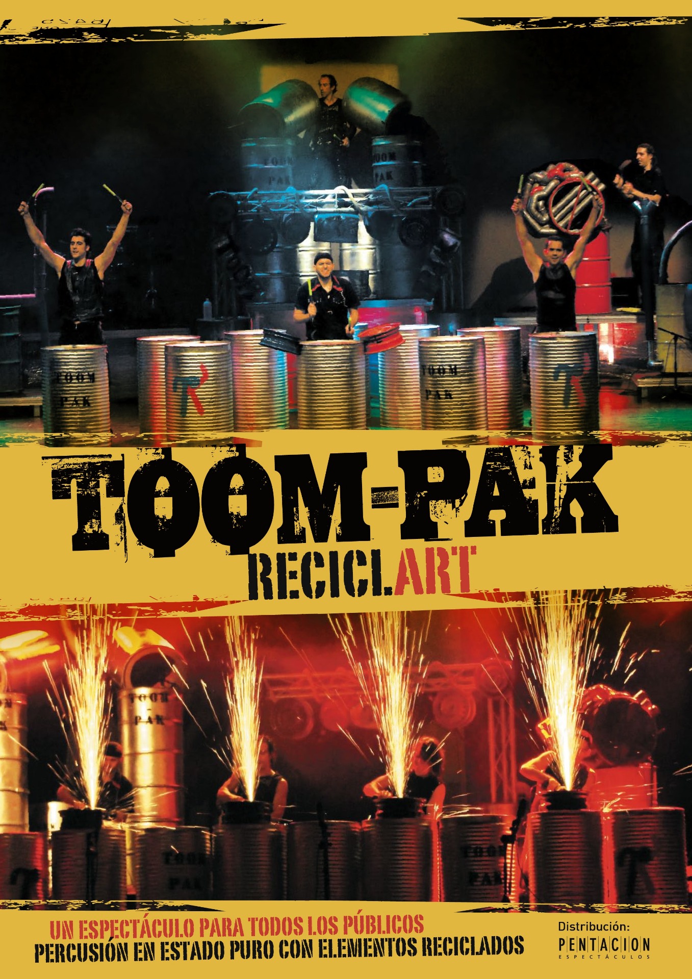 TOOM PAK es percusión en estado puro, comedia visual y ritmo combinado en un espectáculo musical. La energía y el ingenio se dan la mano para dotar de vida a los objetos, que, en manos de los TOOM PAK, se transforman en una propuesta teatral en dónde la basura y los residuos son... Belleza.